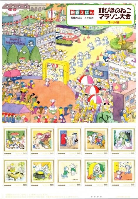 馬場のぼるの11ぴきのねこマラソン大会ゴール編2020・オリジナル切手シート
