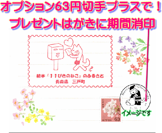 ※オプション63円切手購入の場合、当店プレゼントハガキに期間消印のクリスマス小型通信日付印の記念押印いたします。